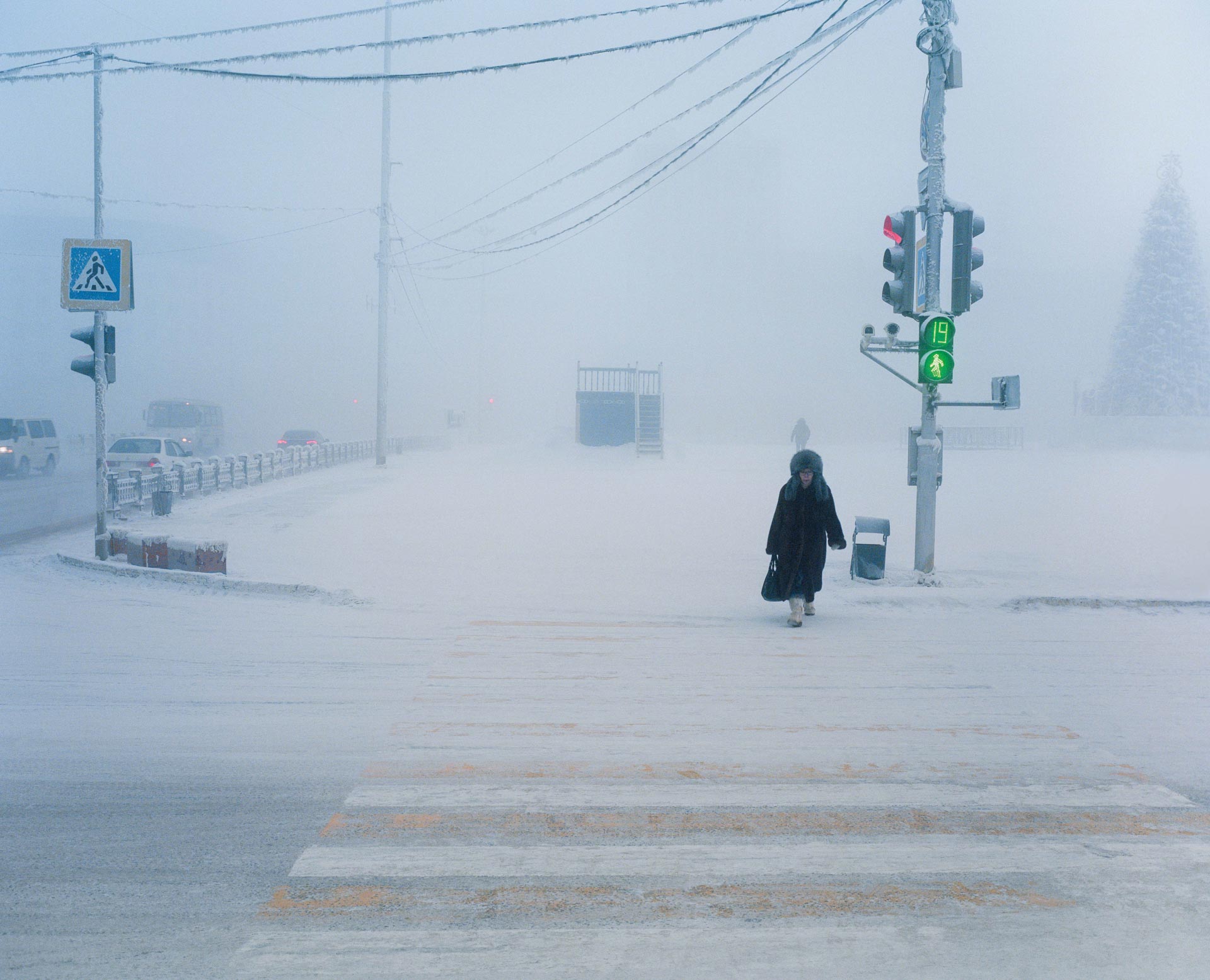 Learning that I had family there, I naturally decided to go toYakutsk. The climate there is hostile: it’s one of the coldest inhabited places on the planet, where winter temperatures reach minus 60°C. Observing the inhabitants in their daily life, I assessed their energy level, capturing it in images in order to better understand how life is organized in these extreme conditions. “Such a big city in such hostile lands, a few hundred kilometers south of the Arctic Circle, feels like an anomaly.” (Sylvain Tesson)